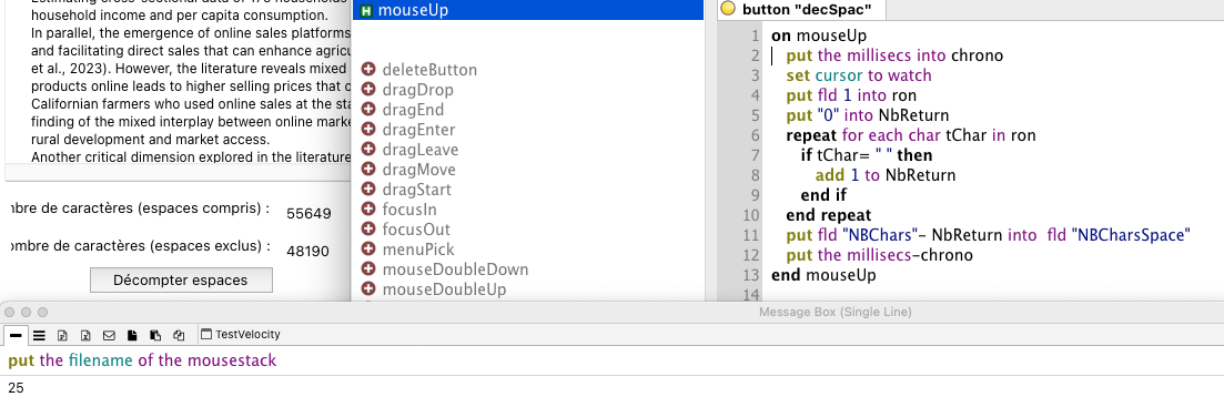 I had a little time and "pimped" your "Décompter espaces" button script with the english text you provided.