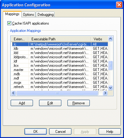 Under Application Configuration, click Add, and then click the Mappings tab