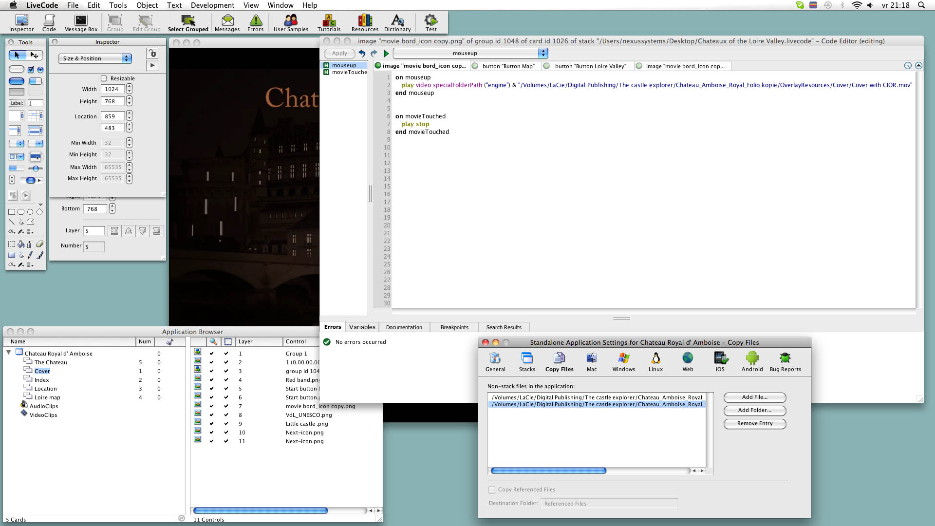 play video specialFolderPath ("engine") & "/Volumes/LaCie/Digital Publishing/The castle explorer/Chateau_Amboise_Royal_Folio kopie/OverlayResources/Cover/Cover with CIOR.mov"