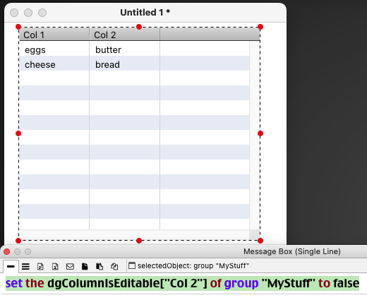 set the dgColumnIsEditable["Col 2"] of group "dg1" to FALSE