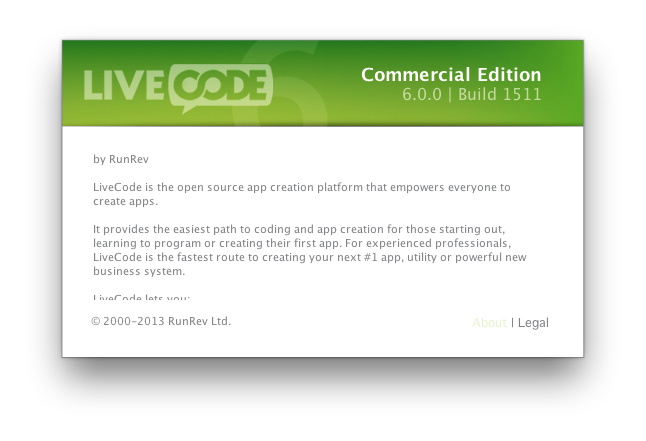 Just curious - the "About" screen of my OSX LC 6.0 install claims it's the "Commercial Edition". I certainly didn't pay anything (yet) and am sure I downloaded the Community version....