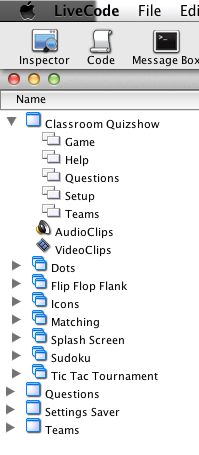 But I've recently gotten fancier because of the Mac App Store requirement to save data in the ~/User/Library/Application Settings/Classroom Quizshow/ folder. I have a copy of the Settings Saver.rev file in the application package. In the Windows standalone, the app simply uses this copy of Settings Saver.rev (in the app folder in that case), but in the Mac OS X standalone, the copy of Settings Saver.rev in the app package is copied to the Library folder if it isn't already there, and it may also be copied over if it's determined that the file needs to be updated (as it will have to be in my next release).