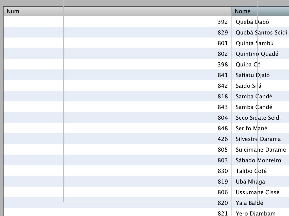 3. the sort order is, at least one time, not operating well and "Suleiman" comes before "Sábado".