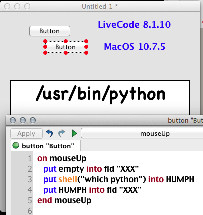 stackoverflow wrote:The Python 2.6.5 installer modifies your ~/.bash_profile file to put Python 2.6.5's bin directory at the start of your $PATH, ahead of /usr/bin which is where the OS's default Python interpreter lies. That profile is automatically read when you log in via Terminal, but not when using do shell script. You either need to specify the full path to the python executable you want (probably the best option), or you could have your script read the bash profile beforehand (though be aware that do shell script uses sh, not bash):