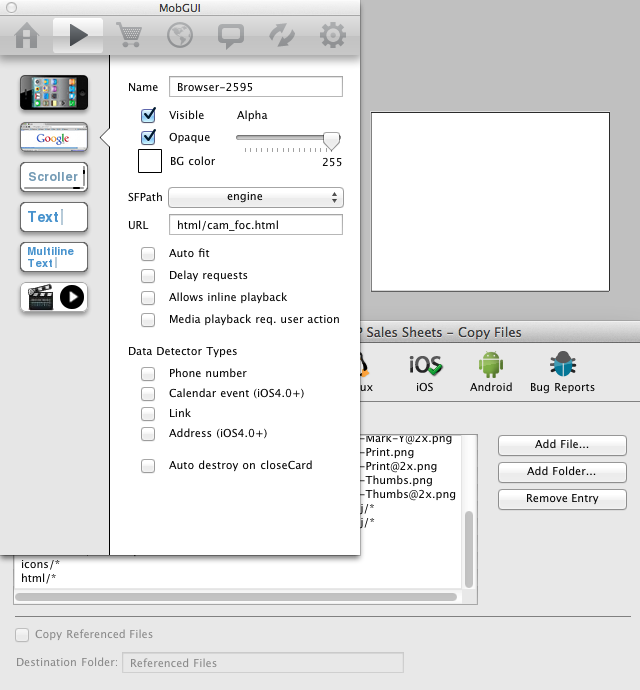 Card 2 would have the browser control from mobGUI. I've attached an image that shows how this control is configured.