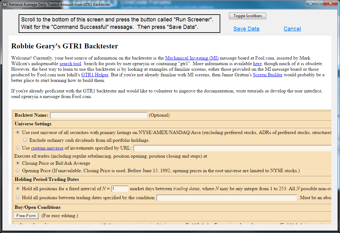 By the way, had you been able to save the data, you would have obtained the Symbol, Name and Average Daily Traded Amount in Dollars for 64K+ stocks. Works nicely on my Mac but I can't trust it on a my "PC". Unfortunately, most of people I would share this with are PC users.