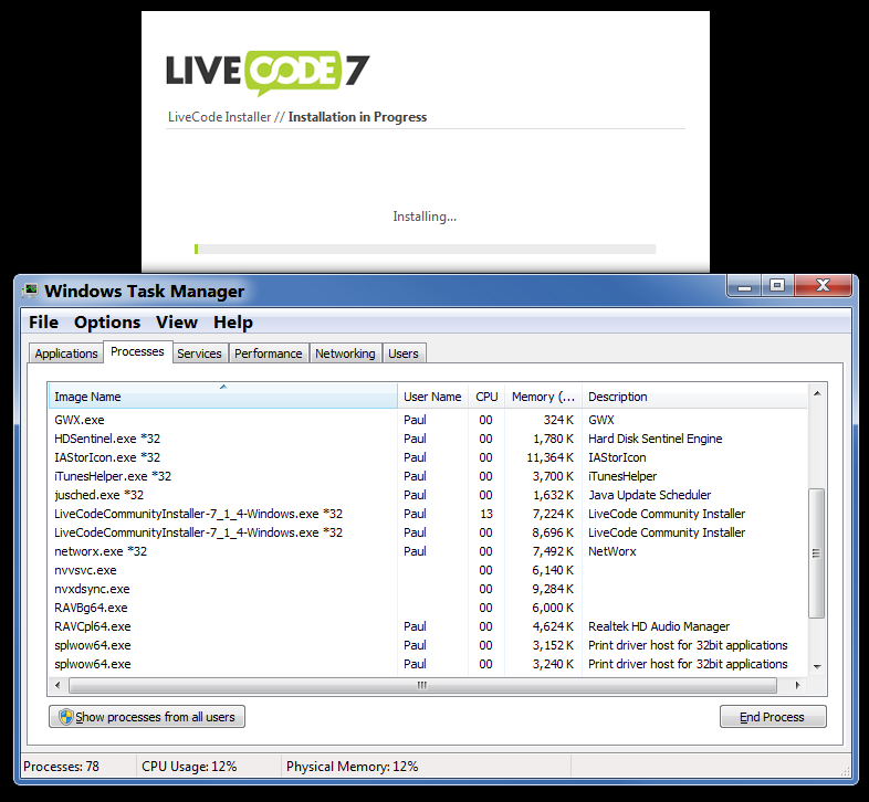 Livecode Community 7.1.4 stalling during attempted install; not crashing just stuck.
