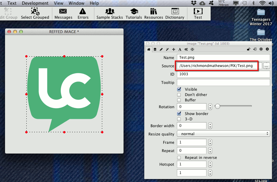 Why don't you use -> specialfolderpath("home") (or -> $HOME for *NIX based OSses) to set the image path? That will work on all desktop platforms. 8)
