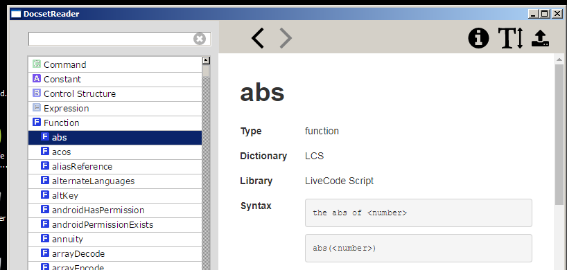 Re: Docset Reader now on LiveCode Share