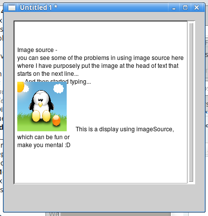 First, though, I really don't think image source is going to do what (I think) your looking to do. In this example, the image is set to 100 x 100. This is what the text would look like without a LOT more work.