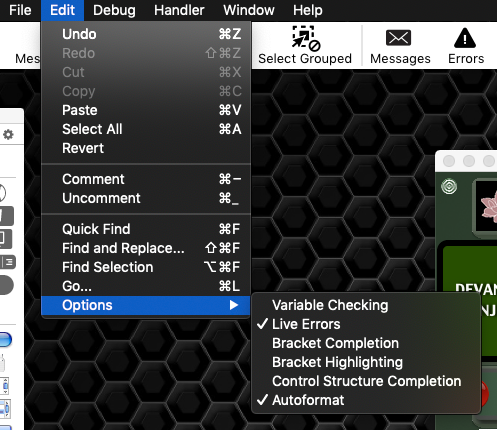 In the scriptEditor of LC 9.0.3 rc-2 (and earlier) running on macOS 10.14,