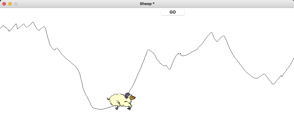 The gif is of a walking sheep which moves to the points of a curve (more of a straight line) starting about centre and 2 thirds down of card to bottom right of card.