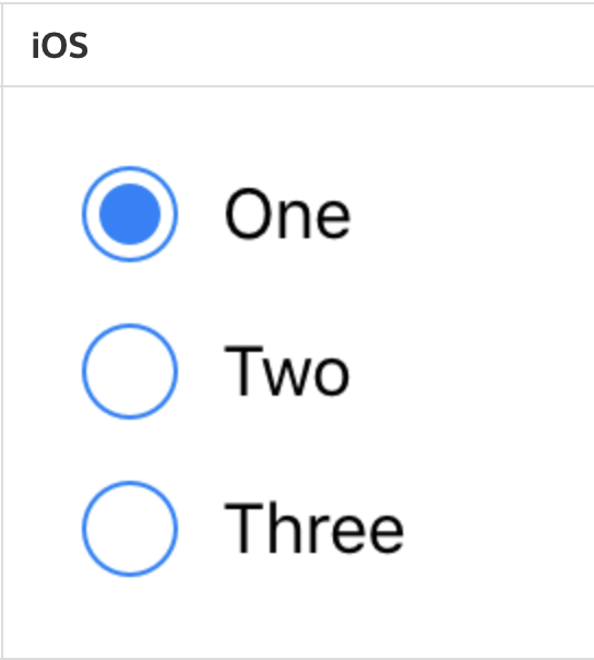 I was curious as to what iOS-style radiobuttons would be - it's perhaps noteworthy that there is no radio button in the iOS HIG (https://developer.apple.com/design/huma ... s/buttons/), although there is for MacOS.