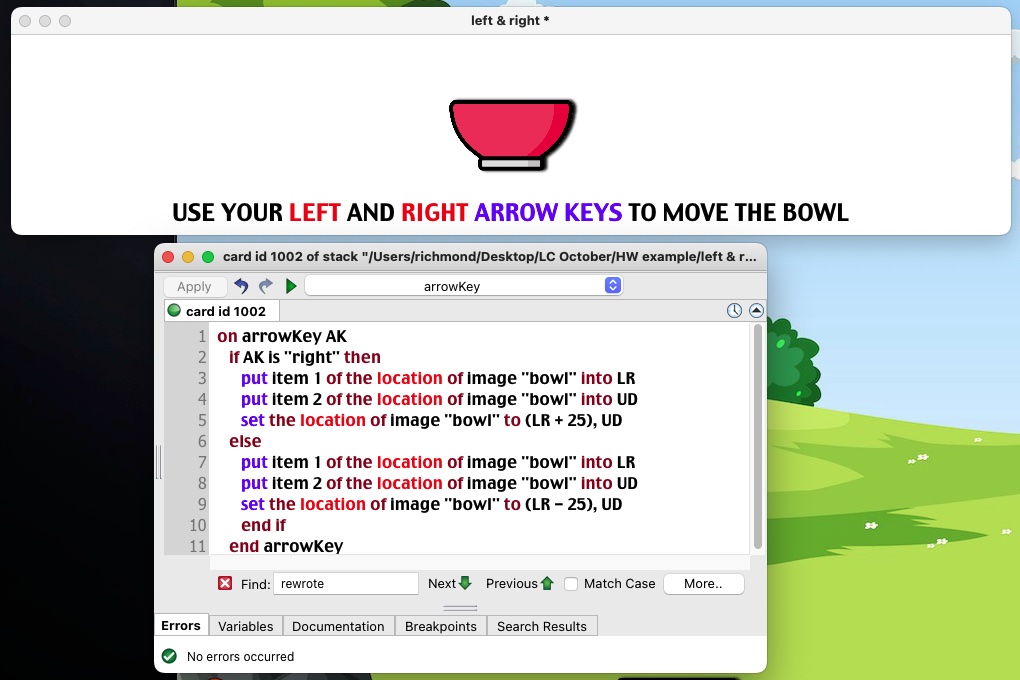 Now we can work on the script that can shift the bowl left and right in an attempt to catch the falling sweetie.