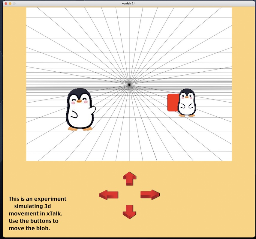 Here's an exercise demonstrating how one can simulate 3d stuff in xTalk: although it consists of a 'blob' being moved relative to a vanishing point, it does demonstrate the basics.