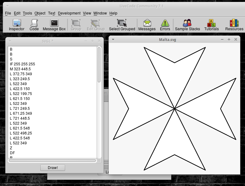Great and nifty work, a lot of thanks (to you and LC's Ian Macphail for the base-SVGL from livecodeshare).