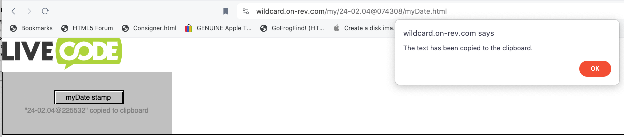 https://wildcard.on-rev.com/my/myDate/index.htmlSWEdeAndy wrote: ↑Sun Mar 17, 2024 11:13 pmYou'll be happy to see that I finally found how to crack the pasting nut - see my just released WebDeployHelper tool beta over here: https://forums.livecode.com/viewtopic.php?f=120&t=38989mbossiere wrote: ↑Thu Feb 01, 2024 4:45 pmSWEdeAndy, I'd also be very curious if you have any similar workarounds concerning file I/O (writing to and from local files on a Mac/Linux/Windows etc) -- and/or the ability to accept clipboard data from a user (incoming). File I/O - even just text - would be magic! Marc