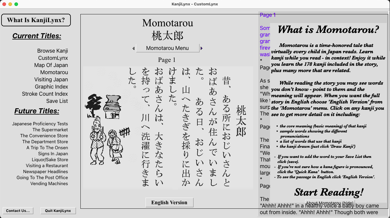 The English text is 90% covered by the 'What is Momotarou' text, and the English