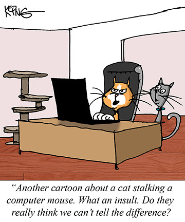 Ours tried to eat the mouse attached to the laptop. Of course, Rumbles has an excuse. He is brainless.