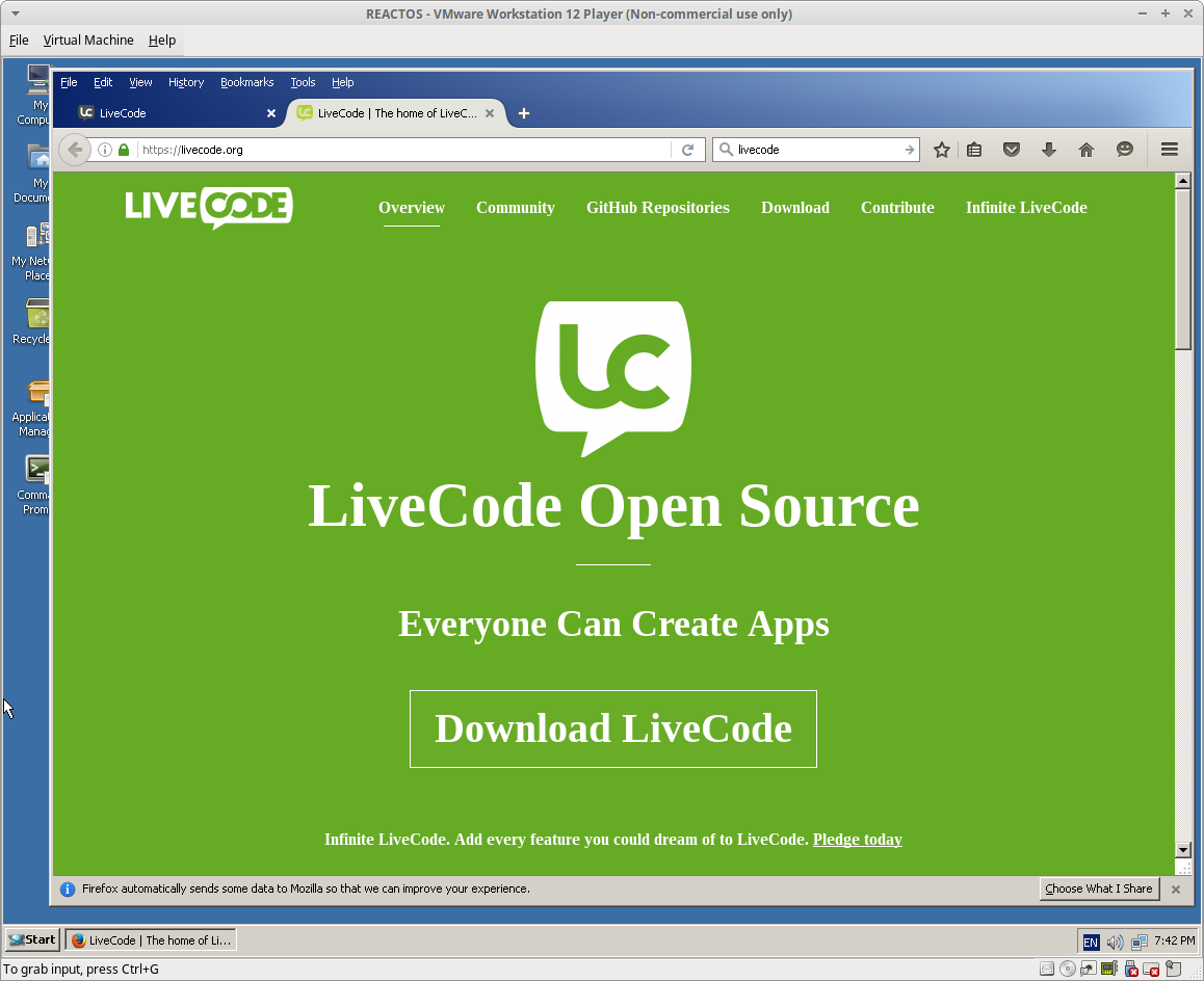 The ONLY reason I tried this is that I undertook to try Livecode on ReactOS a few years ago and am very, very bad at breaking promises.