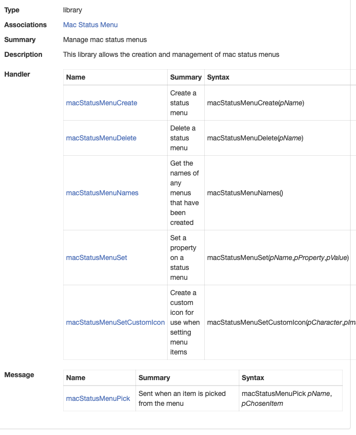 I was wondering whether LiveCode is able to create menubar utility apps for MacOS - you know, apps that add a menu item to the LEFT side of the global menubar (like Dash, SkyFonts, 1Password, etc.).