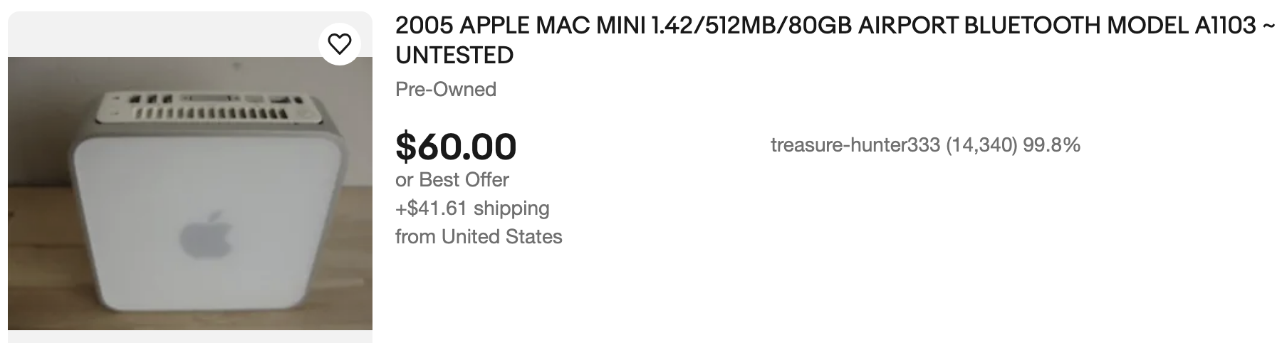 Wow, those G4 macMINIs sure have gotten cheap but I'm not looking for another classic mac, I already have a MDD G4 that can run MacOS 10.4 + MacOS 9.2.2 (and boot to 9.2.2 with "Universal"-mod + run "Sorbet" Leopard 10.6).