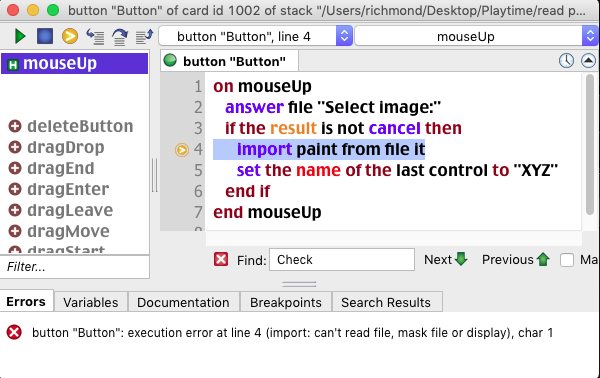 Click the other button that says "Read Values from copy of plist" That one makes a _copy_ of the file from inside the app package, into the same directory that the sample stack lives in. You can open that in any text editor and see that it looks normal. But when it imports the contents into the field, voila! Garbage!
