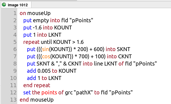 but cannot get my head around some relatively simple way to let the points of a parabola in a listField.
