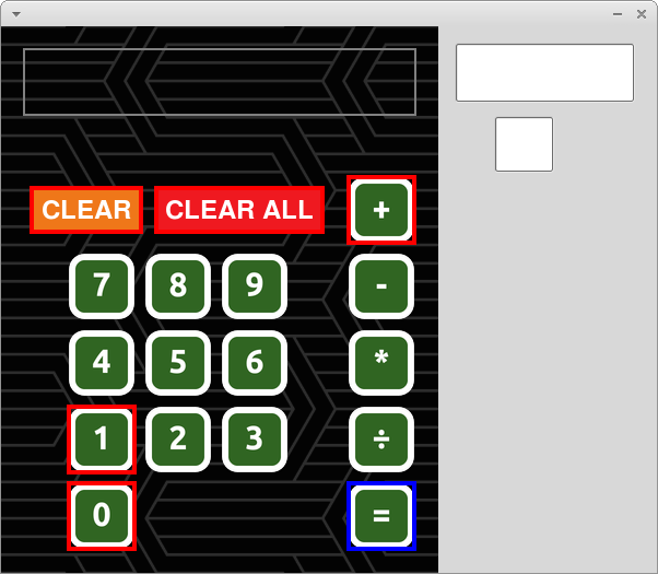 Pupils should write the necessary code in the 3 empty buttons by modifying the code in the '+' button.