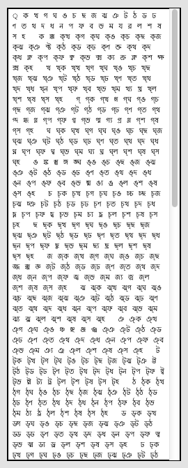 So I returned to the Omniglot page, realising that a vast lexicon of Bengali conjuncts was available there, but using some font