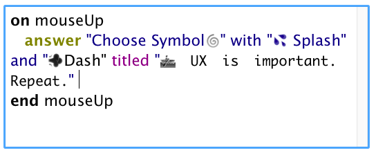 I tried the following test script to view a jazzed-up iOS answer dialog.