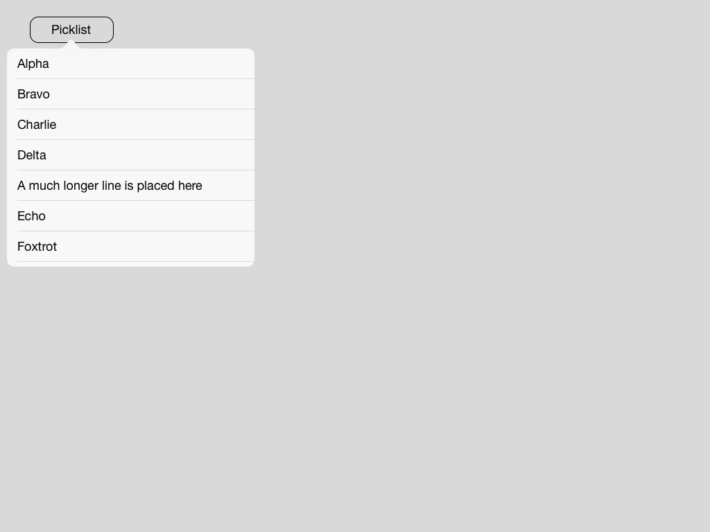 I am testing my app on an iPad 2 and an iPad mini 3. I am using iphonePick for picklists. It looks fine on the iPad 2 but is cut off on the iPad mini. Is there a way to set the picklist width or adjust the font? Any help is appreciated.