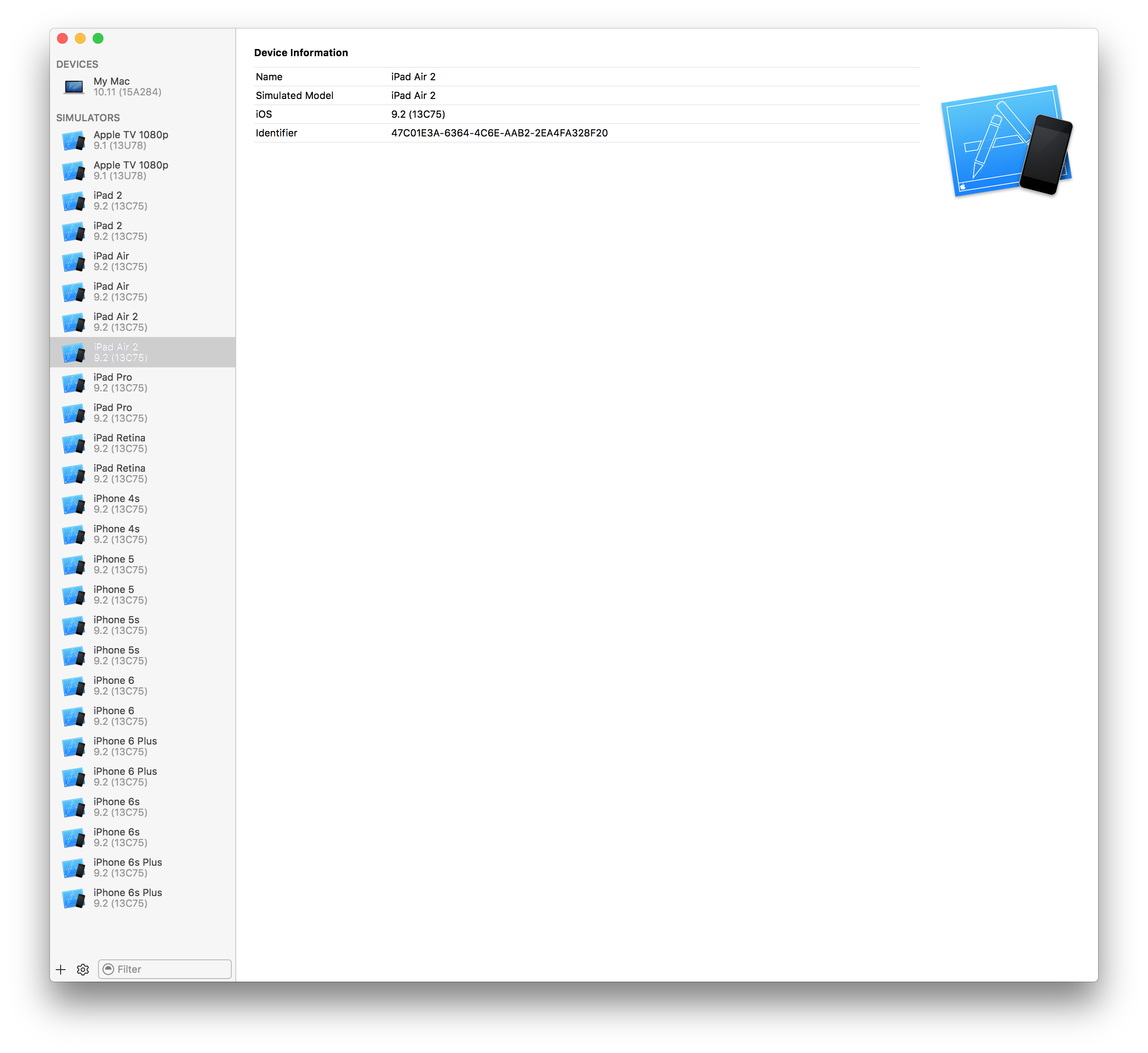I would then add 1 iPad sim and 1 iPhone sim (leaving names as default) which will give you this-