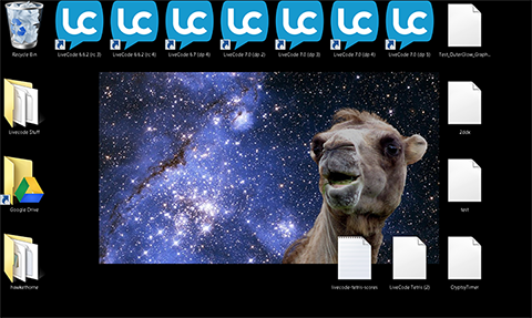 Your desktop cracks me up: camel + too many versions of LC!! Great style.