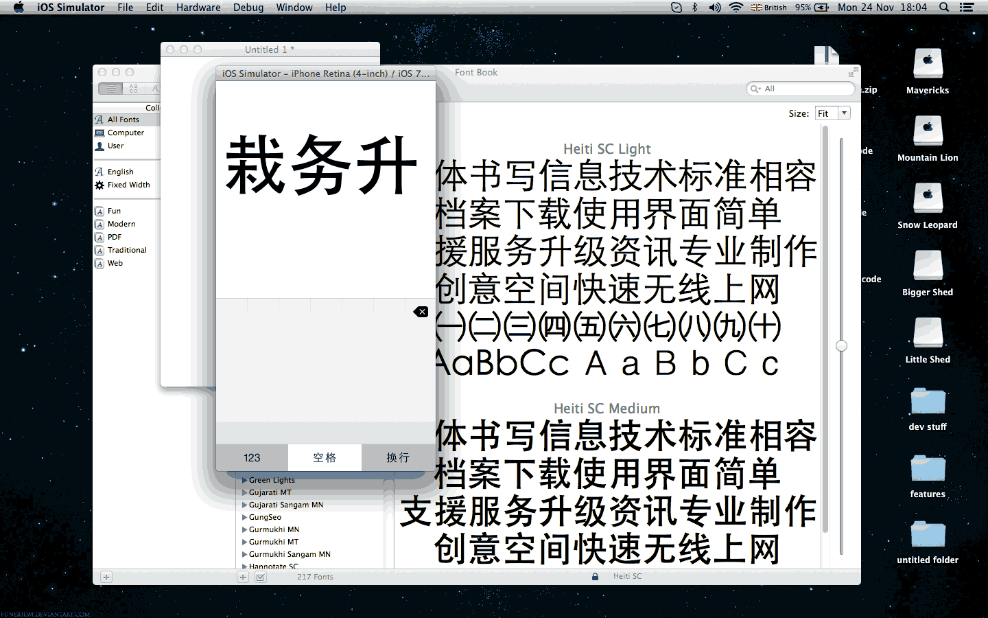 I am able to use LC 7.0, xCode 6.1 and the iOS 8 sim for many things... except it seems the chinese keyboard..:-(