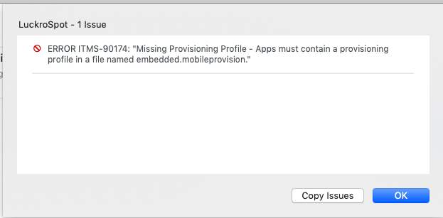 Hi Simon, I have the same or at least similar development set-up. Macos 14.6, Xcode 13.3, LC 9.6.1 Indy. I created a distribution profile for iOS and I was able to deliver the app via transporter (with a warning, see below). Initially I had problems with my provisioning profile as well, and after two nights fiddling around I found this forum tip which helped me, I just downloaded and installed the certificate that was linked in the post and than I got everything working as expected.