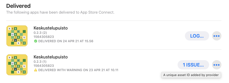 congrats for solving the issue. Did you now receive the same warning when delivering the app via transporter?