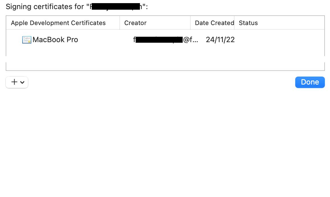 but couldn't find that dropdown. So I went to Xcode > Preferences > Accounts, added my Apple ID to the left pane, then I created a signing certificate in the right pane. I got this: