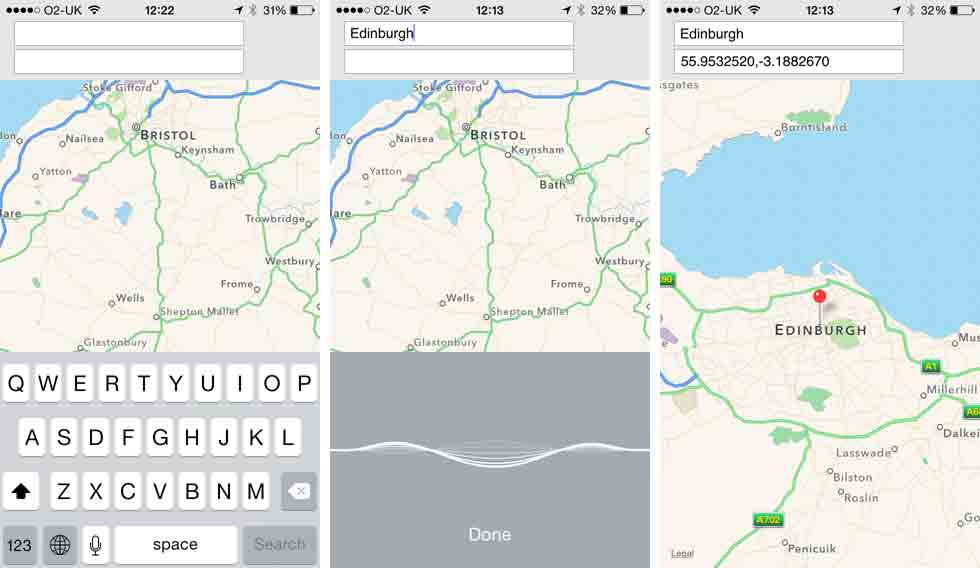 Why not let liveCode and dictation do a search for you ?.. So, I set up a map in iOS and instead of typing the name of the place I wanted to be taken to (as it were)... I spoke it..smile emoticon To make things just a little more interesting with this experiment I then got the script to go and get the latitude/longitude and drop a pin on the map..