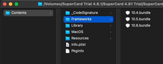 SuperCard 4.8.1 remains 32-bit. Unfortunately, producing a 64-bit version of SuperCard requires a complete rewrite of the software as Apple has gone back on their promise to deliver 64-bit Carbon frameworks. This is a tremendous undertaking, and while the current version has made some inroads in this regard, currently it is unknown how long it will take or if it is even possible."