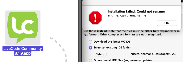 Paradoxically, now, on MacOS 10.7.4 even LC 6.1 gives a "Could not rename engine"