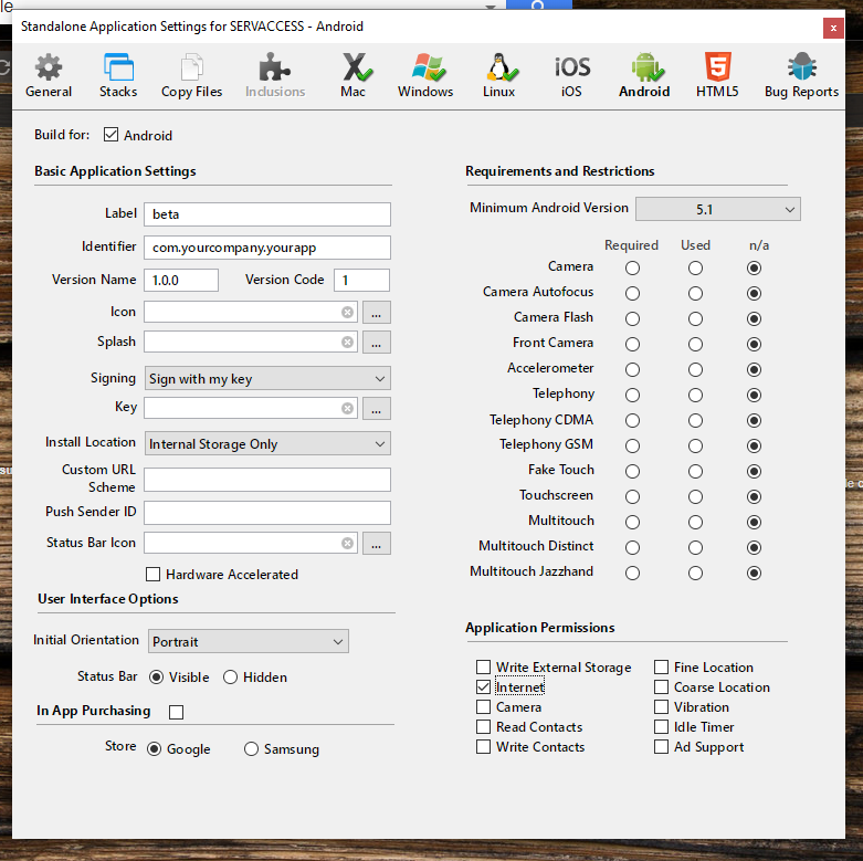 Did you select the right permissions in Android standalone settings? Also make sure you have added all required inclusions manually, don't rely on the automatic search for inclusions. It doesn't always find everything.