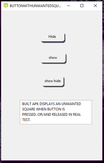1) Does a Square appears- for you too - on top of the button while it is pressed.