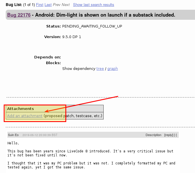 However, assuming this *is* the bug report you (or someone else) filed, you can simply click on the "Add an attachment" link there and add the stack for the team to take a look at.