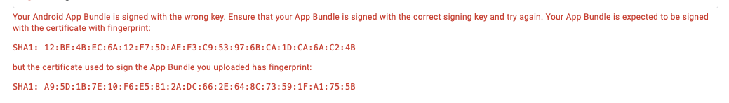 Hi, I'm trying to upload a new update of my Android APP to Google Play and getting the following error, which I have no idea how to fix. The keystore password and the key password are both right otherwise LC wouldn't generate the aab file.