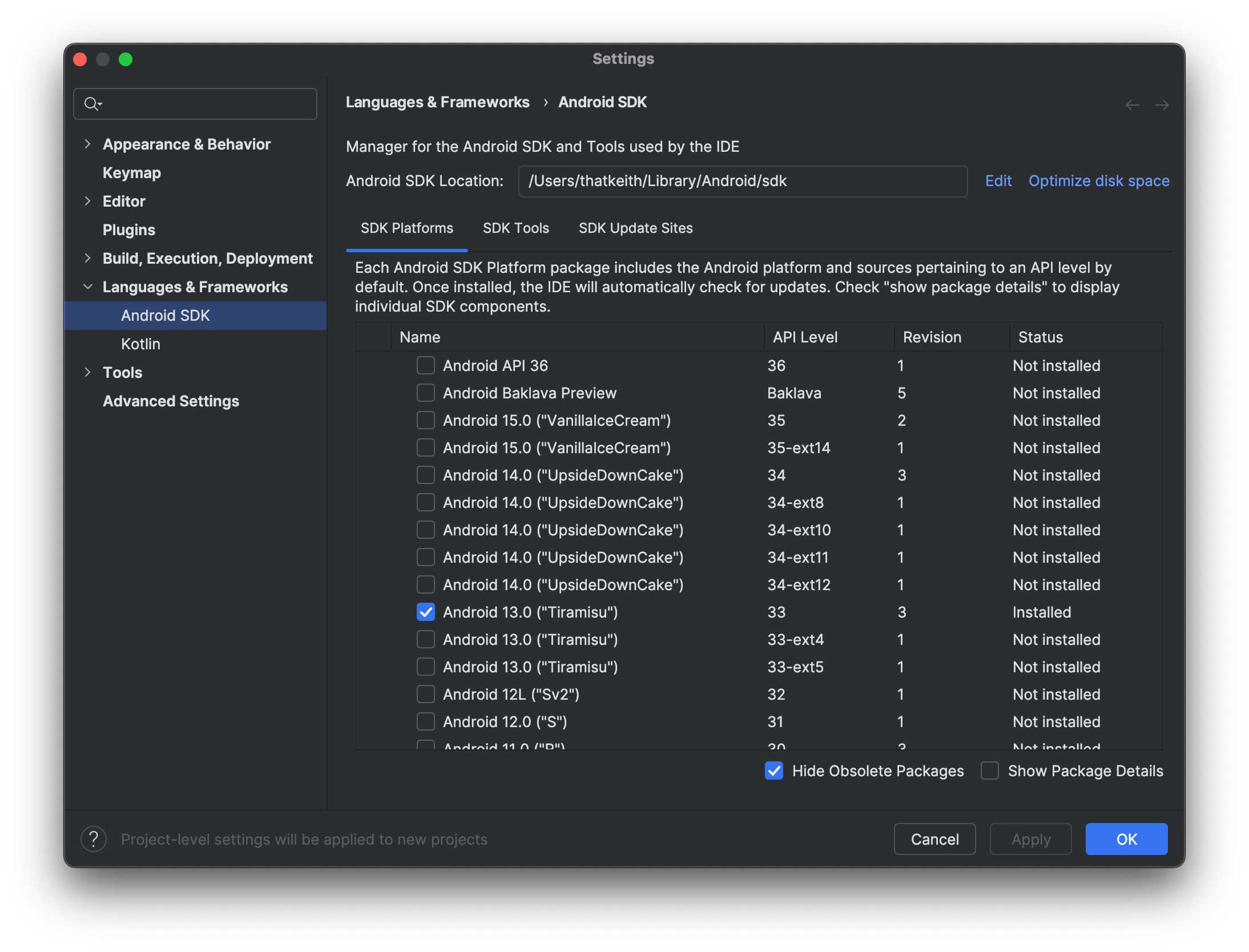 But when I look in the SDK manager I see this: