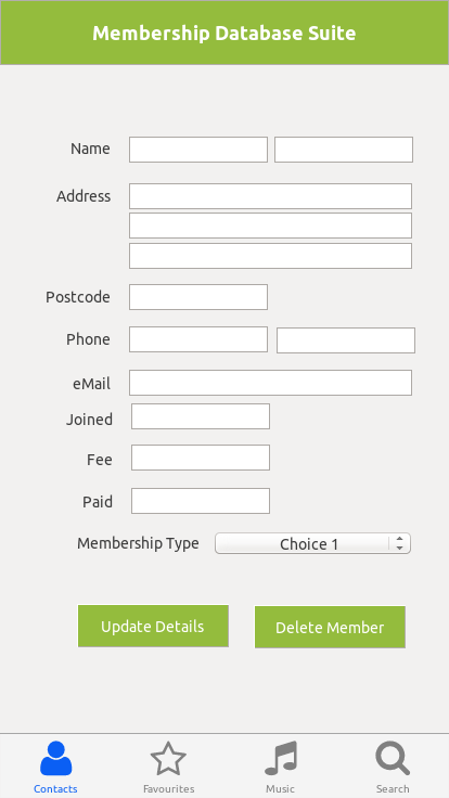 Thanks to FourthWorld for putting the images onto this forum. If you look at the last image of the four. This is the screen that shows the individual record details. Plus the 'Navigation Bar', the 'Update Details' and 'Delete member' buttons which the script below refers to.