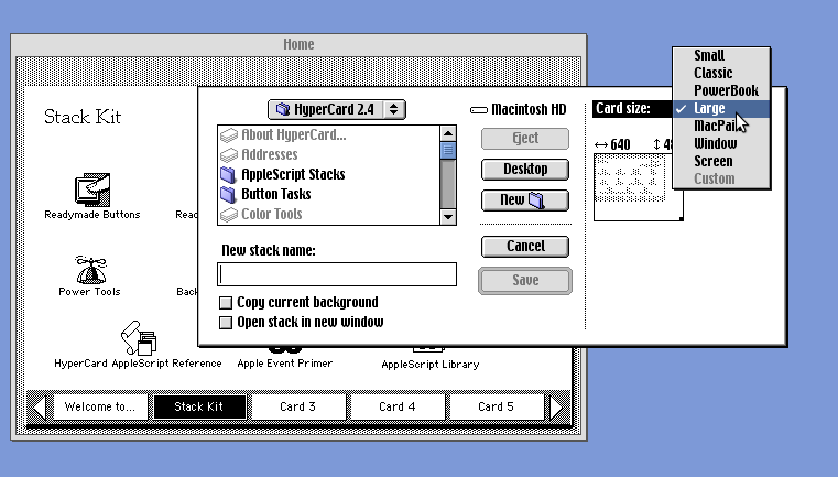 As well, I think it has something to do android devices not being sized by name, but again, I think the "iPhone" part could have been left out or replaced with "Mobile" and "Tablet", or alternately, just leave the resolutions for stack size which, oddly enough, is similar to how Hypercard itself listed them.