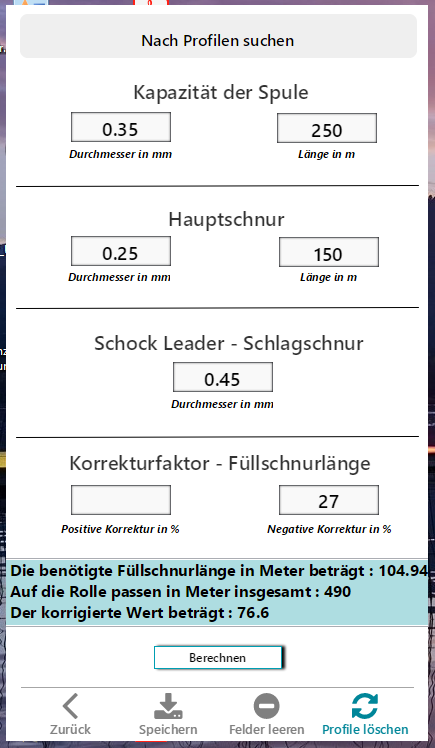Die benötigte Füllschnurlänge in Meter beträgt : 85