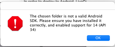 I have downloaded the required SDK but get the following error when I go to preferences and select the SDK root